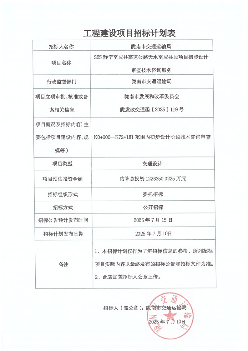 S25靜寧至成縣高速公路天水至成縣段項(xiàng)目初步設(shè)計(jì)審查技術(shù)咨詢服務(wù)