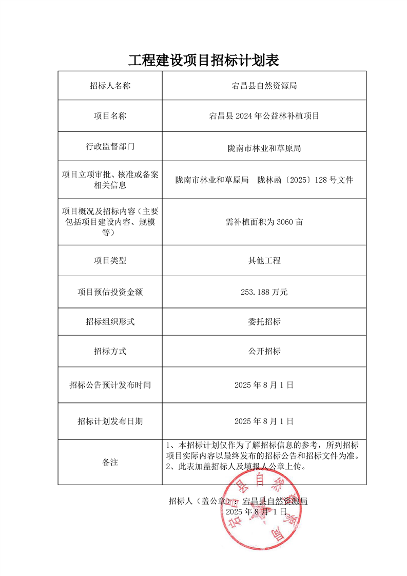 工程建設(shè)項目招標(biāo)計劃表宕昌縣2024年公益林補(bǔ)植項目.pdf