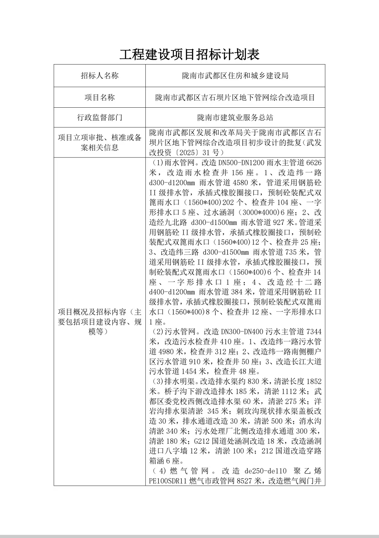 隴南市武都區(qū)吉石壩片區(qū)地下管網(wǎng)綜合改造項(xiàng)目