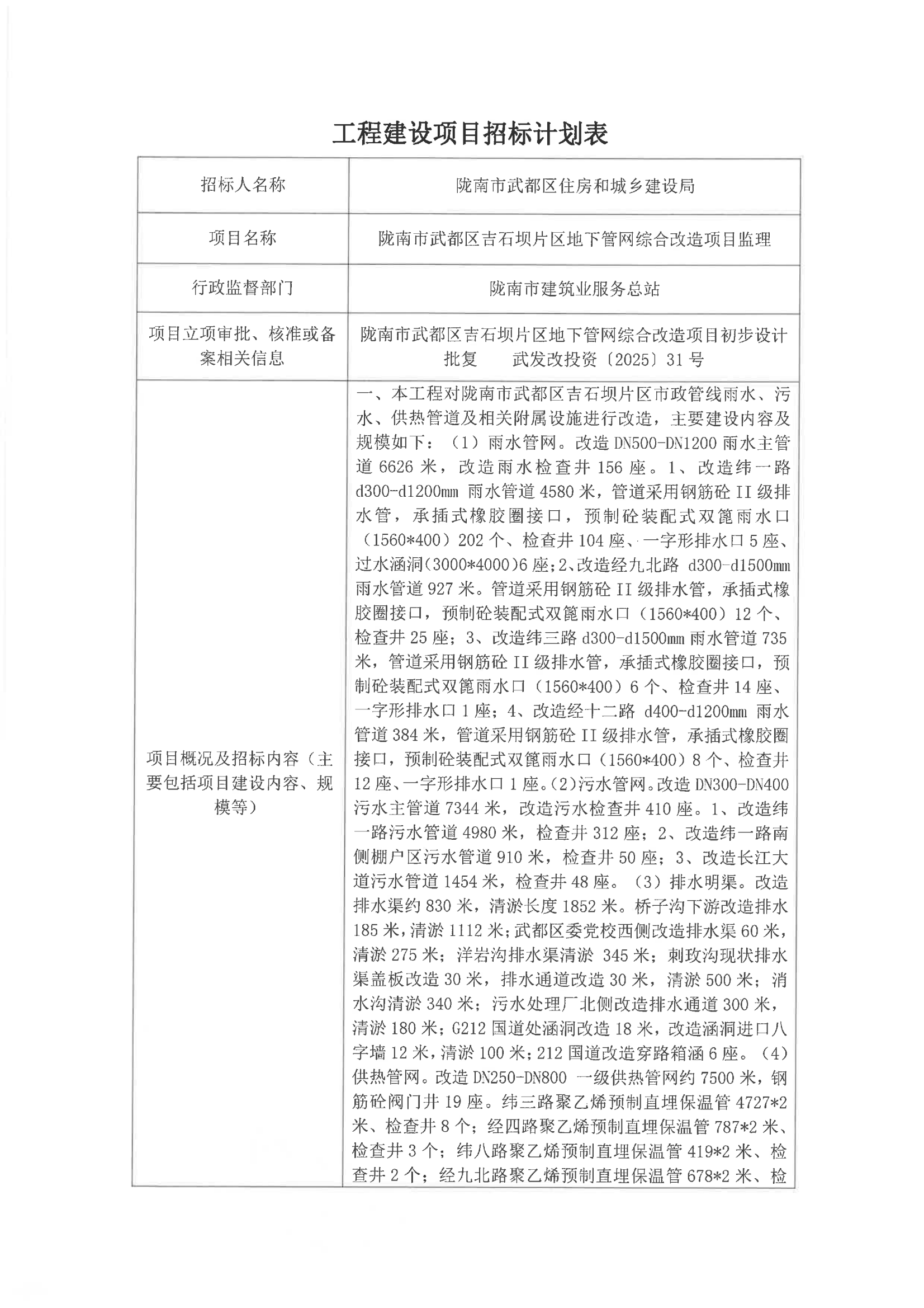 隴南市武都區(qū)吉石壩片區(qū)地下管網(wǎng)綜合改造項(xiàng)目監(jiān)理
