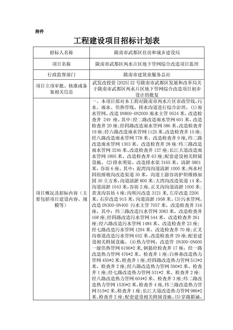 隴南市武都區(qū)兩水片區(qū)地下管網(wǎng)綜合改造項目監(jiān)理