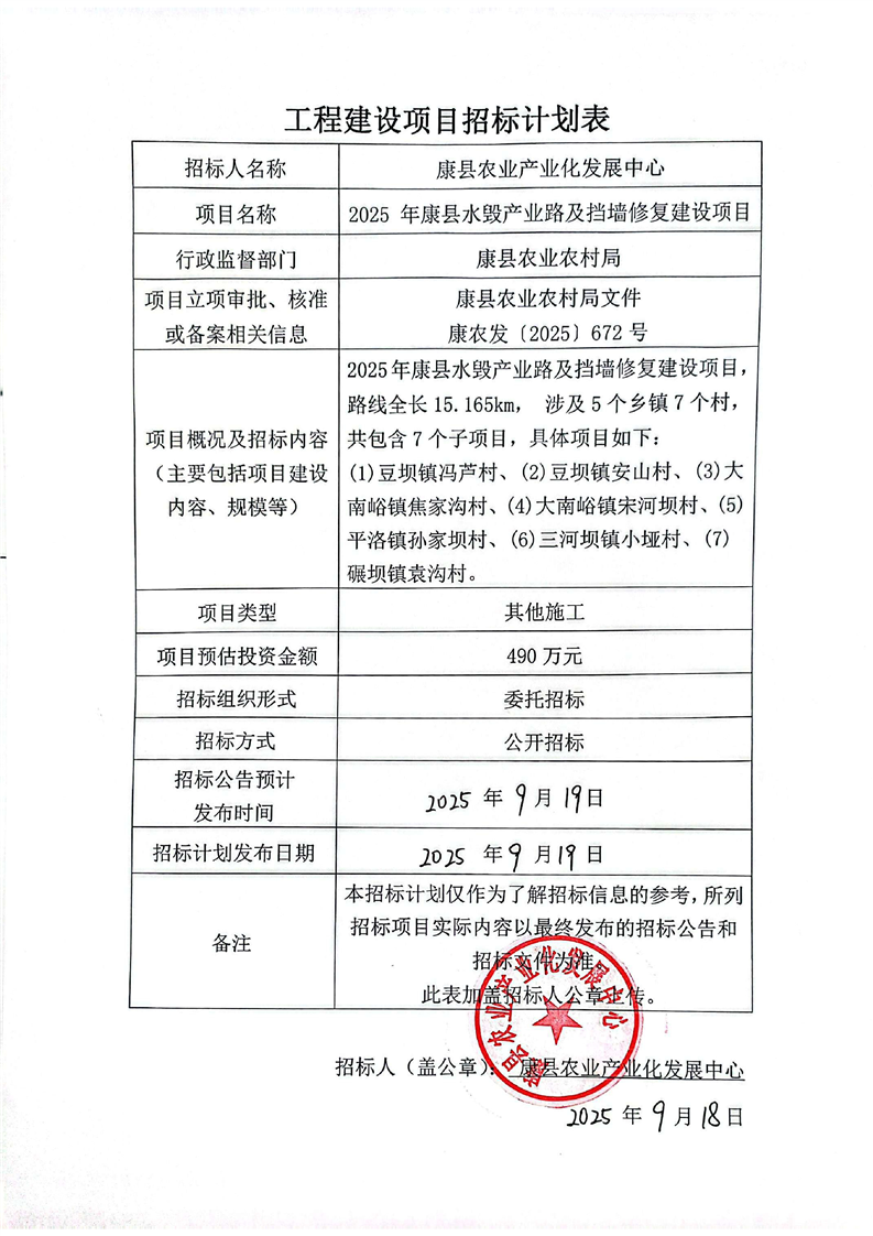 2025 年康縣水毀產(chǎn)業(yè)路及擋墻修復(fù)建設(shè)項(xiàng)目